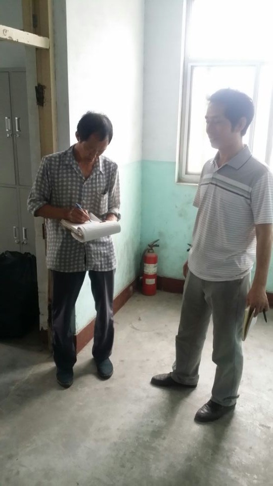 周二下午副校长王剑在学生处处长张天梅,处长助理罗长斌的陪同下对学生教室和宿舍进行了安全隐患排查。发现了多功能插座、电棒、门锁等一系列存在的问题,罗老师一一认真记录,争取在最短时间解除隐患。