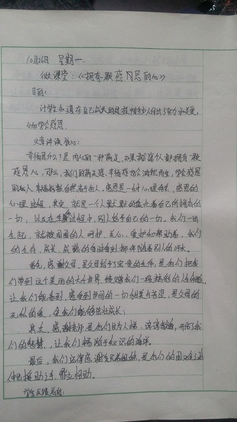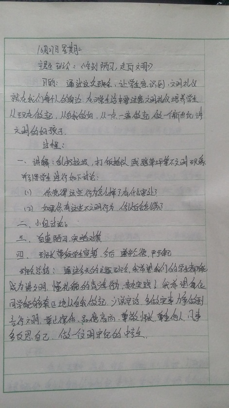 近日,学生管理中心对各班班主任活动开展情况进行了抽查。20余本班主任日志,清楚详细的记载了各班开展的活动总结。 微课堂《拥有一颗感恩的心》、《走近父母—珍惜亲情》、主题班会《告别陋习,走向文明》、《怎样做文明学生》等等。各班级开展了丰富多彩的班会和微课堂活动,有效的促进了学生自我管理及素质的提升,在学生之间反响热烈。