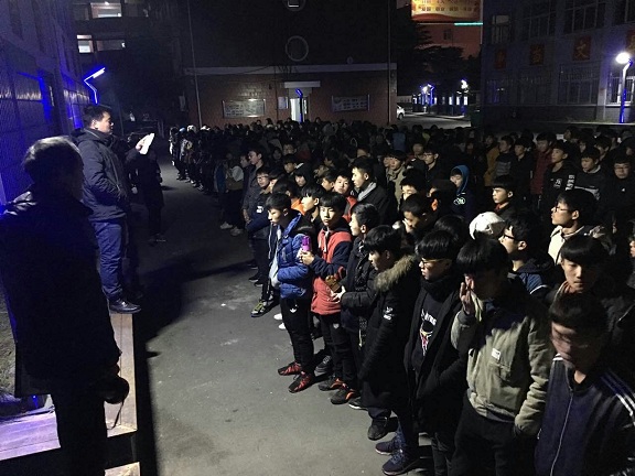 点集合,由值班教官对当天所存在的问题进行讲评。目的是查人数、讲问题、讲整改措施,同时表扬表现好的个人和宿舍,并有相应的奖惩措施。