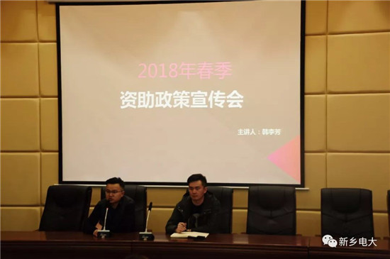 为全面落实新乡市教育局《关于做好2018年国家学生资助政策宣传工作的通知》要求,广泛深入宣传党和国家教育资助政策,充分发挥国家资助政策体系作用,使学生资助政策家喻户晓深入人心,确保政策更好的顺利实施,同时也处于我校“双创”的关键时期,3月27日下午,学管中心在阶梯教室组织开展了一堂关于中职学生资助的宣传课。参加此次活动的有学管中心主任赵广路、校团委书记唐杰、学管中心工作人员及每班十余名学生代表。