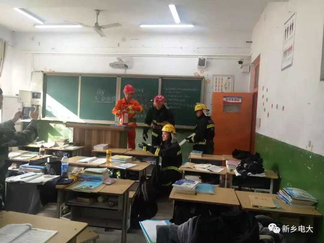 紧接着,红旗区消防大队又在18电商教室里进行了演练。通过消防大队的熟练和逼真的演练,让我们感受到了消防大队精湛的技术和过硬的技能。