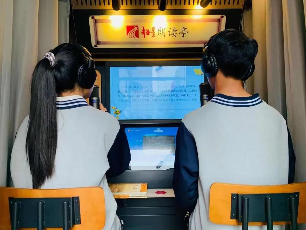 在活动中,同学们以班级为单位,通过学校朗读亭阅读革命经典、诵读红色文献,走进故事的背后,深入了解、仔细体会、感悟我们党团结带领人民走过的百年光辉历程,百年辉煌成就。