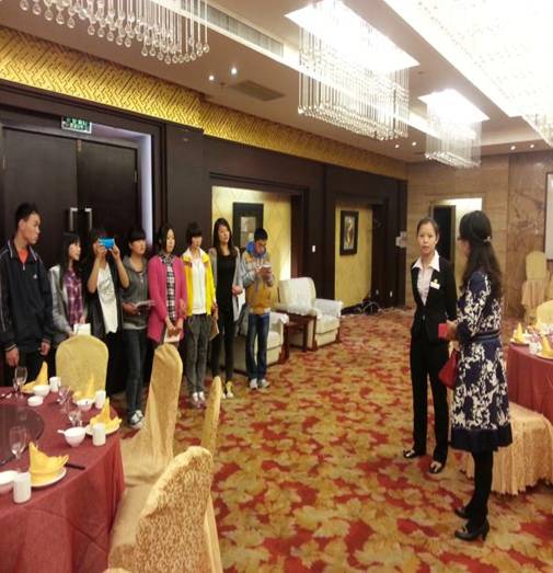 2014年4月23日下午,在实习就业指导中心吴琳主任协调安排下,我校专业课王隽殊老师和实习就业指导中心樊玲玲老师带领13级酒店服务与管理专业的学生来到了新乡市四星级酒店国际饭店进行参观学习。本学期学校酒店服务与管理专业开设了《饭店管理概论》等专业课程。为了使学生对本专业有更形象直观的认识,更好的将书本知识和工作实际相结合,教务处和实习就业指导中心特安排了本次参观学习活动。