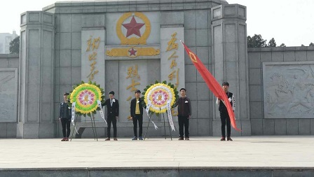又是一年清明时,无限哀思寄先烈。为激发学生对先烈的崇敬之情,缅怀革命先烈,弘扬爱国主义精神。3月31日上午,我校青年志愿者在校团委书记赵广路的带领下,徒步前往烈士陵园,开展了清明扫墓活动。活动期间同学们都静静的肃立在纪念碑前,缅怀烈士的英雄事迹,表达自己对革命烈士崇敬的心情,并通过向革命烈士敬献花圈、默哀、参观陵园博物馆等形式,表达了学生们对革命烈士的无限缅怀之情。