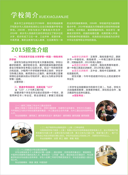 新乡市工业学校2015招生简章